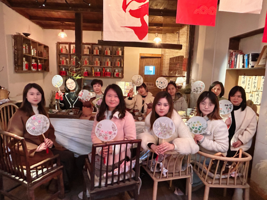 生一爐煙火,圍一方天地,在裊裊茶香中,女職工們敞開(kāi)心扉、互動(dòng)交流,圍繞推動(dòng)公司高質(zhì)量發(fā)展談思路、說(shuō)想法、提建議,現場(chǎng)氣氛輕松愉悅。隨后,便開(kāi)始手工環(huán)節——團扇DIY制作活動(dòng),專(zhuān)業(yè)老師分享了團扇的歷史與文化內涵,細致講解了壓花團扇的制作技法。大家以高漲的熱情投入到團扇創(chuàng )作之中,認真構思圖案、錯落有致地搭配,塑造出了各種別致的團扇作品。制作完成后,大家紛紛拿著(zhù)自己精心制作的團扇合影留念。