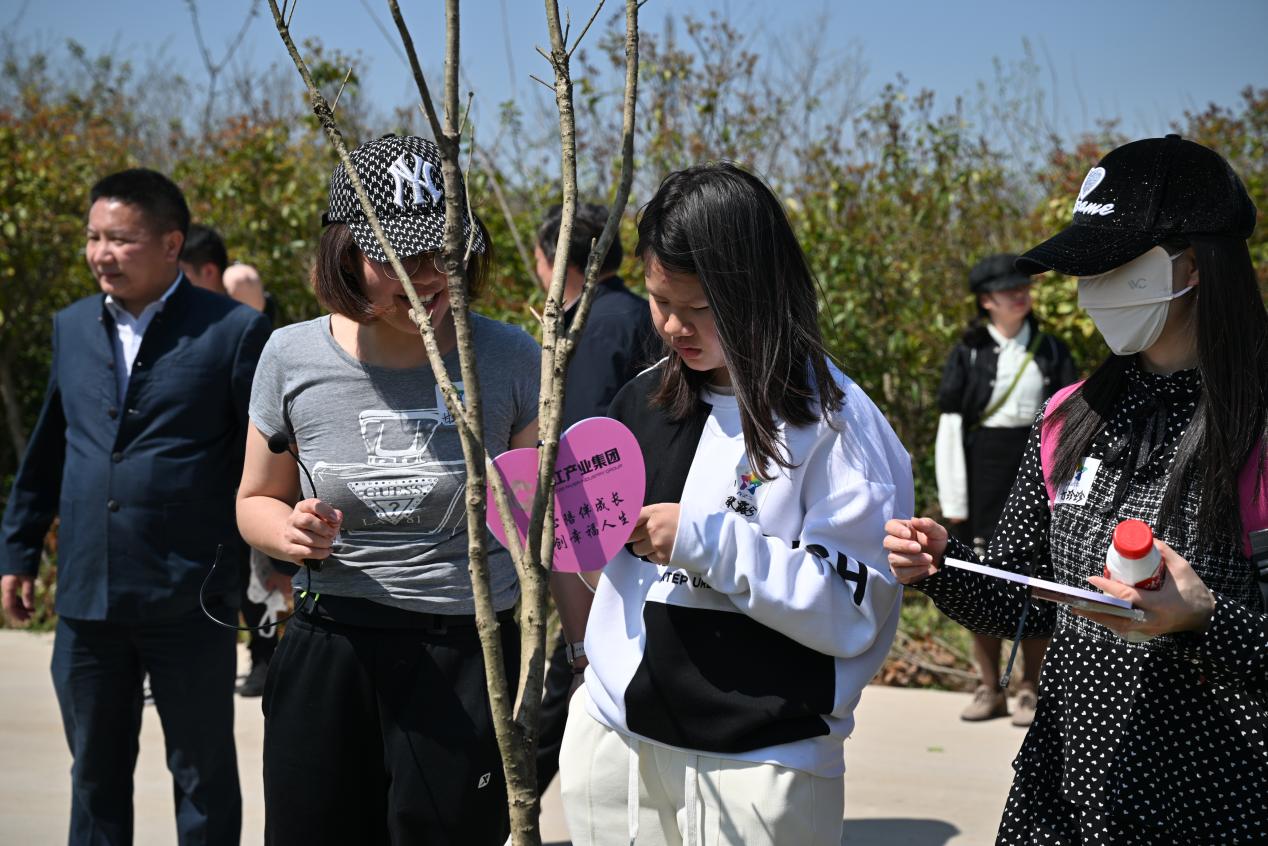 在桃園,志愿者們認領(lǐng)桃樹(shù),并掛上自己的名牌,大家表示將共同守護這片綠色家園。