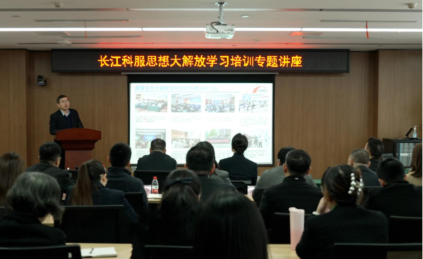 11月28日,長(cháng)江科服開(kāi)展思想大解放學(xué)習培訓專(zhuān)題講座。公司黨委書(shū)記、董事長(cháng)易琳主持會(huì )議,公司“科技副總”羅林波以“新型研發(fā)機構建設與成果轉化服務(wù)”為主題授課。