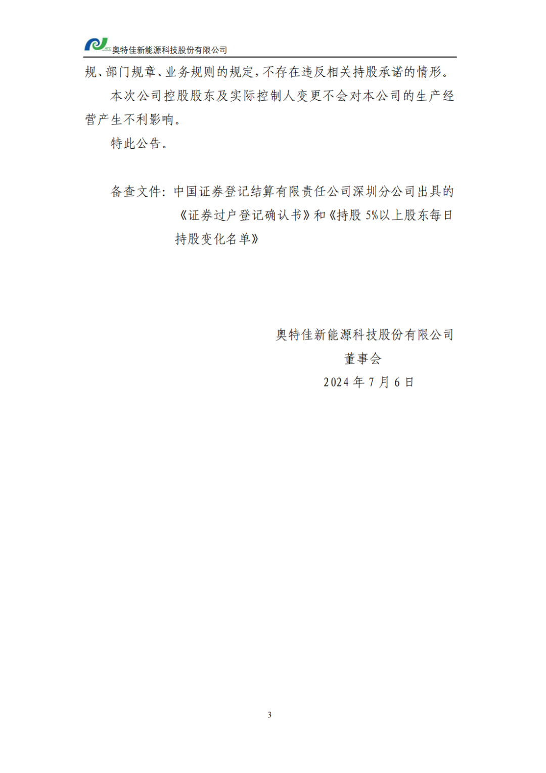 奧特佳新能源科技股份有限公司董事會(huì )???????